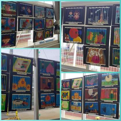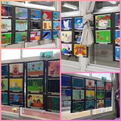 この期間にともない2年生の美術の作品を多目的室で展示をしています。