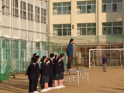 今年最後の全校集会を行いました。二学期に授業をしてくださった保健体育の先生が、全校生徒に「当たり前の、何げない日常、それをみんなで大事にしてほしい」と最後のメッセージを贈ってくださいました。本当にありがとうございました。