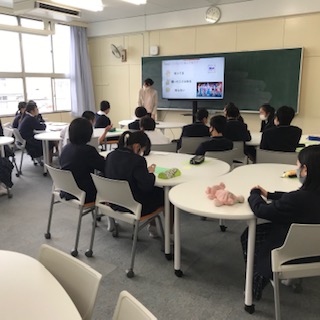 1年キャリア・タイム「う」チームは、NPO法人JAEに来校いただきました。事前に自分の弱みと強みをシートに記入し、グループワークのあと、リモート(zoom)で全国のキャリア・コンサルタントさんと1対1での対話セッションを通し、自分の弱みを強みに変え、未来の自分への手紙を書くという取り組みをしました。
