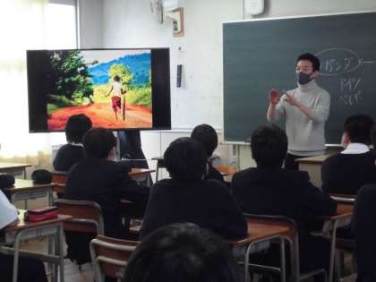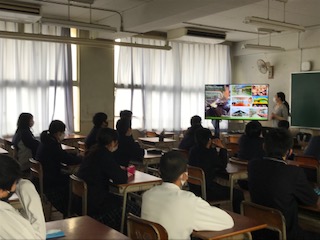 1年キャリア・タイム「え」と「お」チームは、独立法人JICAより、青年海外協力隊体験者の方に来校いただきました。「え」はウガンダで2年間、「お」はボリビアで2年間、青年海外協力隊に参加された方から、たくさんの動画や写真とともに、国際協力体験を聞かせていただきました。