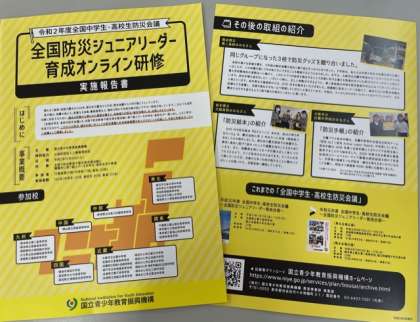 防災ALTが参加した、2020年12月に実施された全国防災ジュニアリーダー育成オンライン研修の実施報告書が届きました。防災ALTは研修会当日だけでなく、その後も岩手県立大槌高等学校、熊本県立第二高等学校の皆さんと交流を続けています。