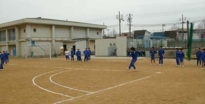 あやしい空模様に、朝からハラハラ、ドキドキしながら昼食時間になりました。何とか天気ももちそうだな、ということで運動場での試合決行!