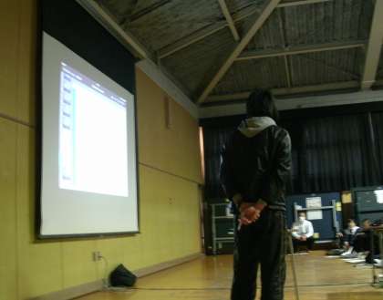 2限目は小体育館で、動画なども用いての講義でした。みんな真剣に取り組んでいました。