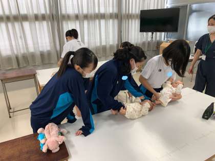高校授業体験その3(赤ちゃんのお世話、美容師体験)