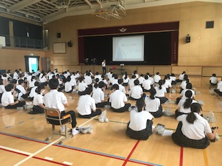 2年生は、ヒューマンキャンパス高校の川島先生を講師としてお招きし、キャリア教育の視点からのご講演を聴かせて頂きました。「外側の幸せ」「内側の幸せ」など聴かせて頂いた内容は、また学年通信でも共有していきますね。講演後、殆どの人がビッシリ感想を書いていました。また、講演の最後には学年委員長が代表で、心のこもった挨拶をしてくれました。川島先生、貴重なひとときをありがとうございました。