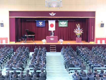 桜の花が満開の下、49期生226名が入学してきました。生徒会の役員の先導でクラスごとに入場です。緊張しながらも、中学校生活への期待に目を輝かせて、胸を張っての入場です。