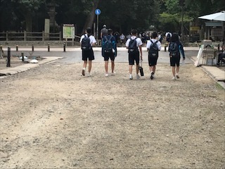 オリエンテーリング、ただいま東大寺・浮見堂・博物館前・飛火野などを、班で協力しながら、地図を片手に散策中です。