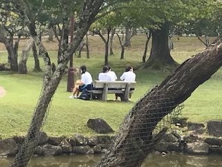 一番遠いチェックポイントの東大寺は、すでに全班が通過しました。そろそろランチタイムの班も。天気に恵まれ、まさに絶好の秋日和です。保護者のみなさん、朝早くからのお弁当作りありがとうございました。