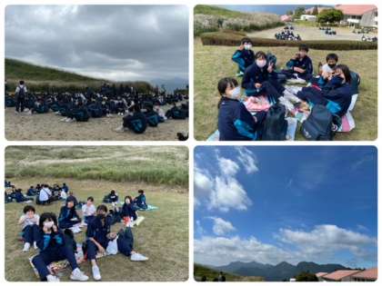到着した時は曇り空‥ お弁当を食べる時には晴れ間が出てきました。 この後はハイキングです!