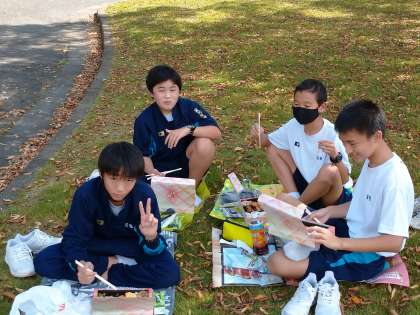 お天気にも恵まれ、広い飯田運動公園でお弁当を食べています。みんなリラックスした様子です。