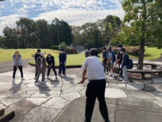 緑あふれる場所で開放感に溢れながらパターゴルフを楽しんでいます。