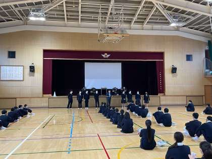 本日10/25(月)、桃団の団集会を体育館で行いました。