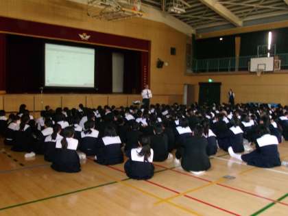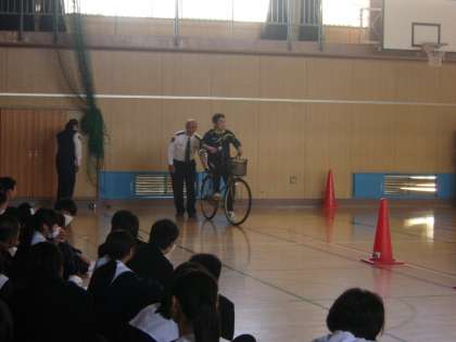 今日、東住吉警察署から3名の警察官の方に来ていただき、2年交通安全教室が行われました。