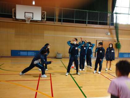 続いて、「一つの物をみんなで1文節ずつ言って説明するクイズ」「班で1コマずつ表現する紙芝居」などを行いました。どれも、即興性や体を動かすことが重視されていて、ふだんの授業とは違う雰囲気でみんな大喜び!