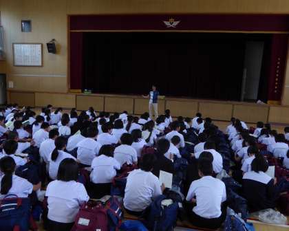 白鷺中学生のモラルのお話や持ち物の確認を行いました。