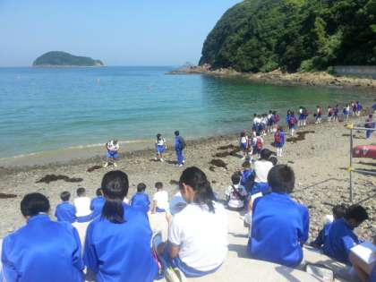 1年生は、2日目の午前中、日高の美しい自然をスケッチ したり、ストーンベインティング用の石をさがしています。