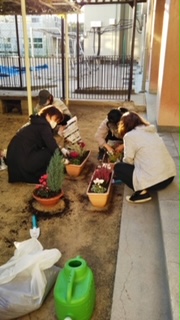 先日 西門のお花の植え替えを 委員さん含めて6名で行いました。可愛らしく植える事が出来ました。ありがとうございました。