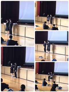今日の学年集会は、各学級の委員長が学級を代表して話をしてくれました。お疲れ様でした。そのあと、動画を活用し、SNSの使い方などを、みんなで学習しました。