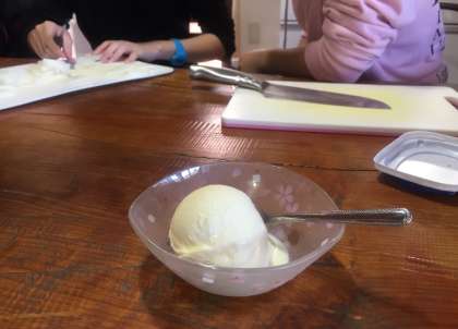 お菓子屋さんに泊まらせていただいたところでは、朝からヤギの乳絞りをして、そのミルクからアイスクリームを作っていました。なんて貴重な体験っ????