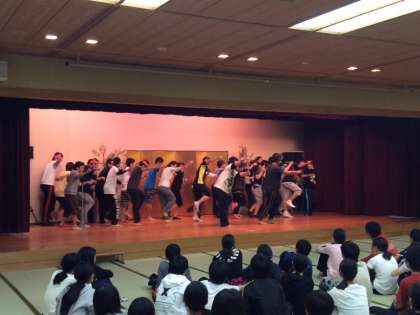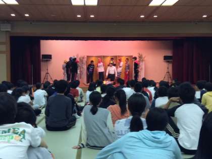 2日目の夜におこなわれたレクリエーション大会は、各クラス本当に個性あふれる完成度の高い劇となりました。どのクラスにも関西人魂でしょうか、かなりお笑いの要素(芸人のモノマネや、女装、男装などなど)が入っていました(^-^)見る人を楽しませたいっ!という思いなんでしょうね!