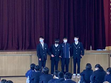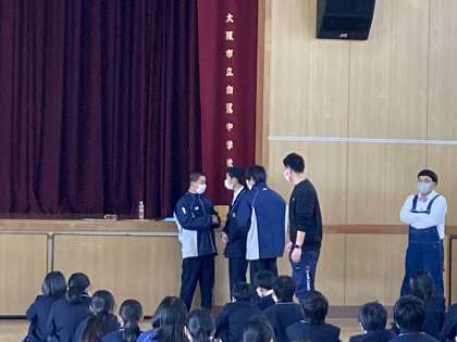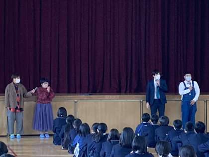 担任の先生と生徒の代表が<あいうえお>作文にチャレンジしました。