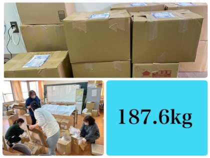 3月9日の放課後に、PTA保健委員会の皆様と使用済みカイロの荷づくりをしました。総重量187.6kg、荷づくりしたダンボールは14個。保護者の皆様のおかげで短時間で作業を終えることができました。お忙しい中、作業に参加いただいた保護者の皆様ありがとうございました。