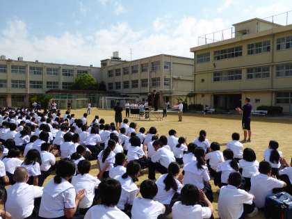 今朝の全校集会で、2名の教育実習生が校長先生から紹介されました。