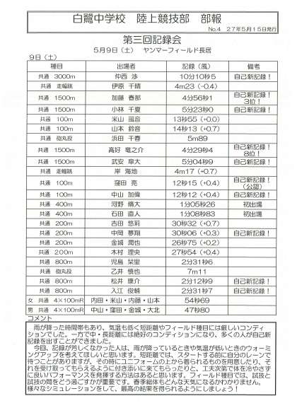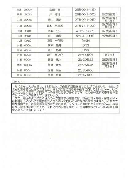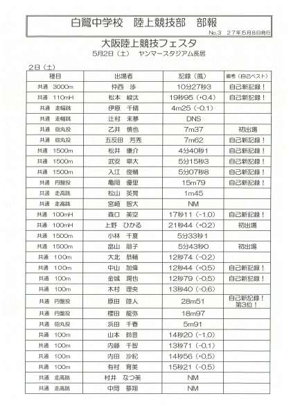 大阪市陸上競技フェスタと第3回記録会の部報です。
