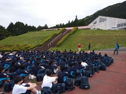 予定より早く曽爾高原に到着しました。曇り空の中での入所式です。
