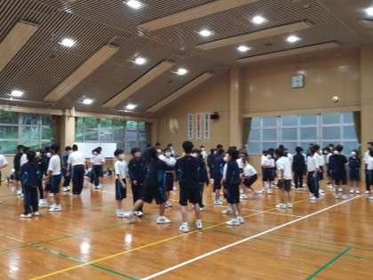 ハイキングが早く終了しましたので、プレイホールにてボールを使った臨時のレクリエーションです。