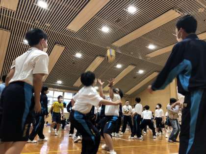 1枚目:名前覚えレクリエーションです。みんなが素早く行動できたため、余った時間を使ってレクリエーションをすることができました。