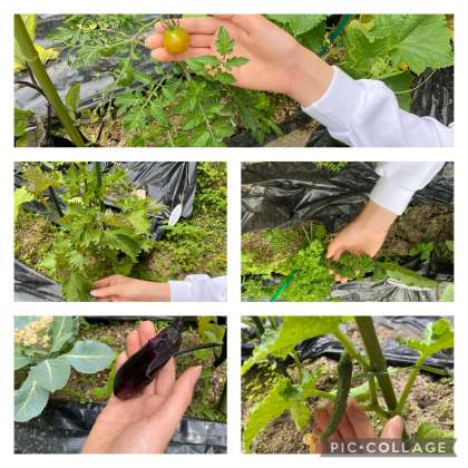 部員みんなで大事に育てている夏野菜が実をつけはじめました。ナス、大葉、パセリ、茄子、キュウリが今年は収穫できそうです。