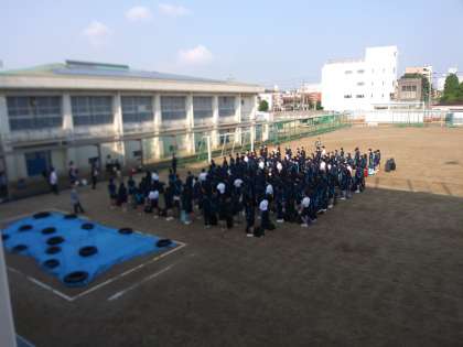 おはようございます。とてもいいお天気に恵まれました。出発式の様子です。