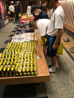 夕食後はお土産購入や入浴の時間。今回の修学旅行では計4回、お土産を購入する機会がありますが、すでに沢山購入している人もチラホラ…。みんな楽しそうです。