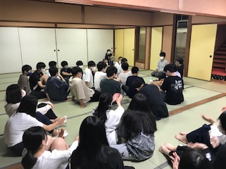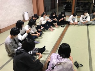 20時半から約1時間、学級ごとに分かれて、レクレーション大会をしました。明日の全体レクレーションの出し物の練習をしたり、学級で考えたゲーム大会をしたりと、どの学級も大盛り上がりでした。そして22時消灯。今日はビッシリたくさんの活動をしたので、みんな疲れてよく眠れることだと思います。おやすみなさい。