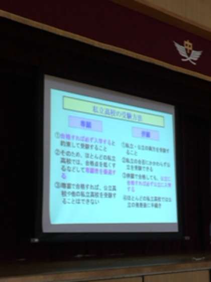 今回は、高校入試について基本的なことを知ってもらいました(さまざまな高校、専願や併願の違い)。みんなの受験から大きく変化することがあります。しっかり情報を集めて、夢や目標に近づいて下さい!