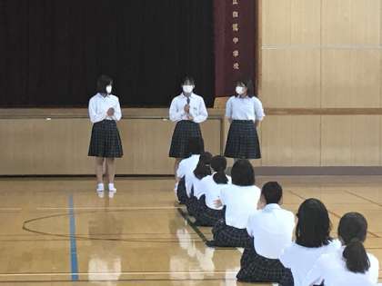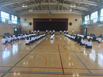 今朝、初めての青団集会をしました。さすがは3年生。みんな早くに来て、キチンと整列して、下級生が整列するのを待ちました。