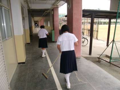 今朝、朝練を終えた女子バレーボール部の部員たちが廊下を掃除してくれました。