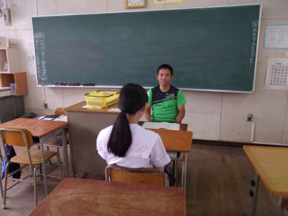 一人一人の生徒と学級担任が、教育相談を行っています。