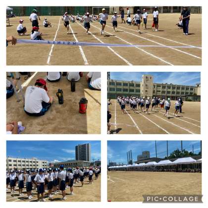 6/30にヤンマーフィールド長居で行われる体育大会に向けての予行練習が、頻繁な水分補給と簡易テントのもとで大幅に時間短縮バージョンで行われています。14:30終了予定です。