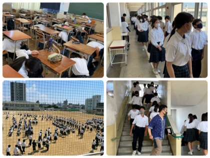 7/1(金)5時間に地震・津波避難訓練を実施しました。1次避難場所の運動場へは素早い避難集合、点呼で2次避難場所の3階校舎に避難することができました。