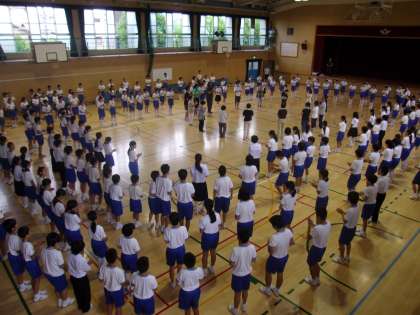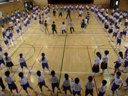 1年生が盆踊り(「豆かち踊り」)を練習しました。