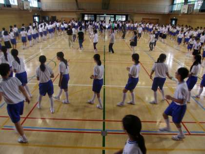 今日の4限に、1年生は、保健体育科のダンス授業として、学校元気アップ地域事業のボランティアさんをお招きして、地域の踊り「豆かち踊り」を教えて頂きました。