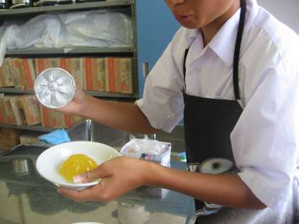 2年生の調理実習で、ピザとオレンジゼリーを作りました。技術の授業で育てたほうれん草もトッピングに加えました。ピザソースの玉ねぎのみじん切りでは、多くの生徒が涙を流していましたが、とても上手に丁寧に作ることができました。ゼリーも型から外すことをとても楽しんでいました。