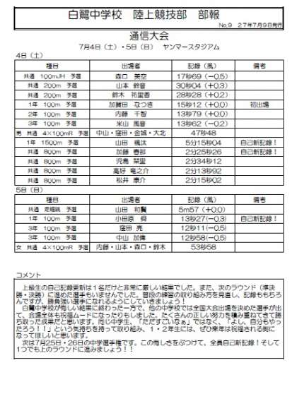 自己記録更新者が少なく、悔しい結果になってしまいました。
