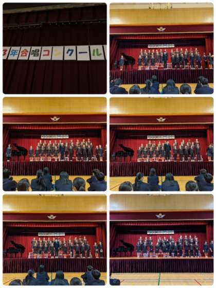 25(火)午後、3年生合唱コンクールを開催することができました。たくさんの保護者の方が見守ってくださる中、どのクラスもみんなで協力して、頑張ることができました。結果は、金賞2組・銀賞4組・銅賞1組でした。お疲れ様でした。