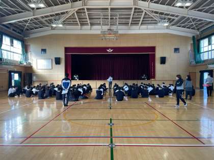 本日10月31日(月)、赤団の団集会を体育館で行いました。