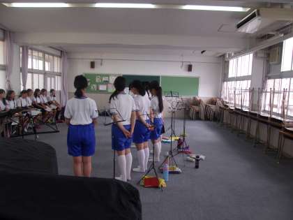 コーラス部・陸上部の小学生部活動体験の様子です。