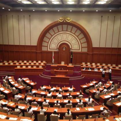 今日は生徒会役員の3年生2名が大阪市の中学生を代表して、おおさか子ども市会 中学生市会に参加しています。