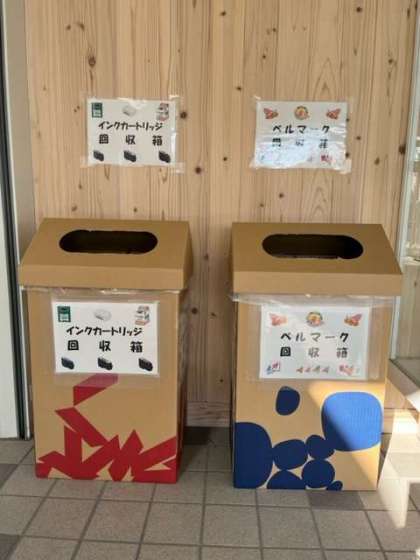 先日、お手紙を配布させていただきましたように、今年度よりPTAにてベルマーク回収をおこなうことになりました。玄関ピロティーにベルマークとインクカートリッジの回収BOXを設置いたしました。お子さまを通して回収BOXへ入れていただいて結構です。ご協力のほどよろしくお願いいたします。